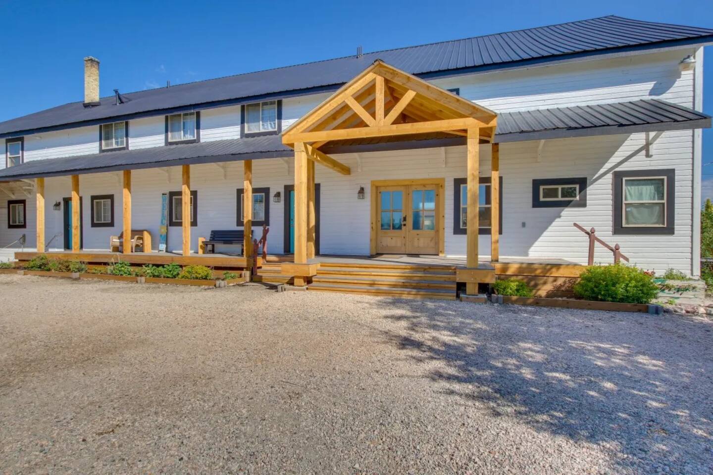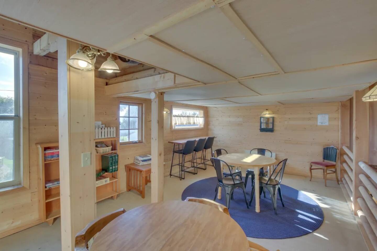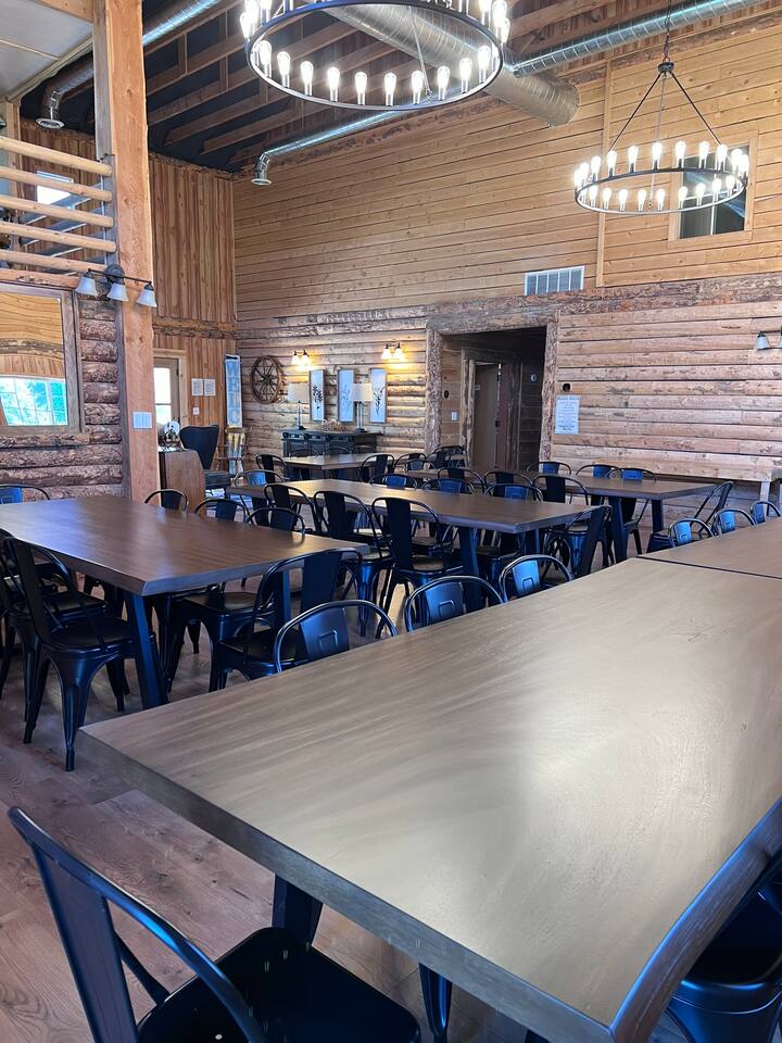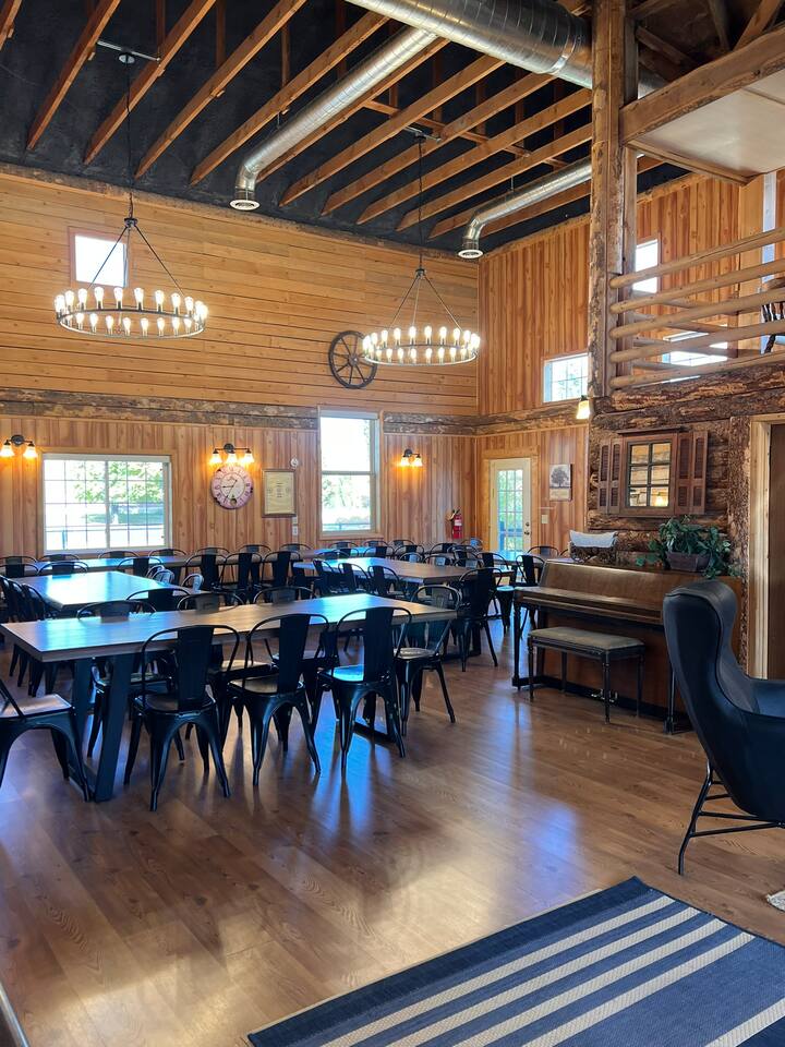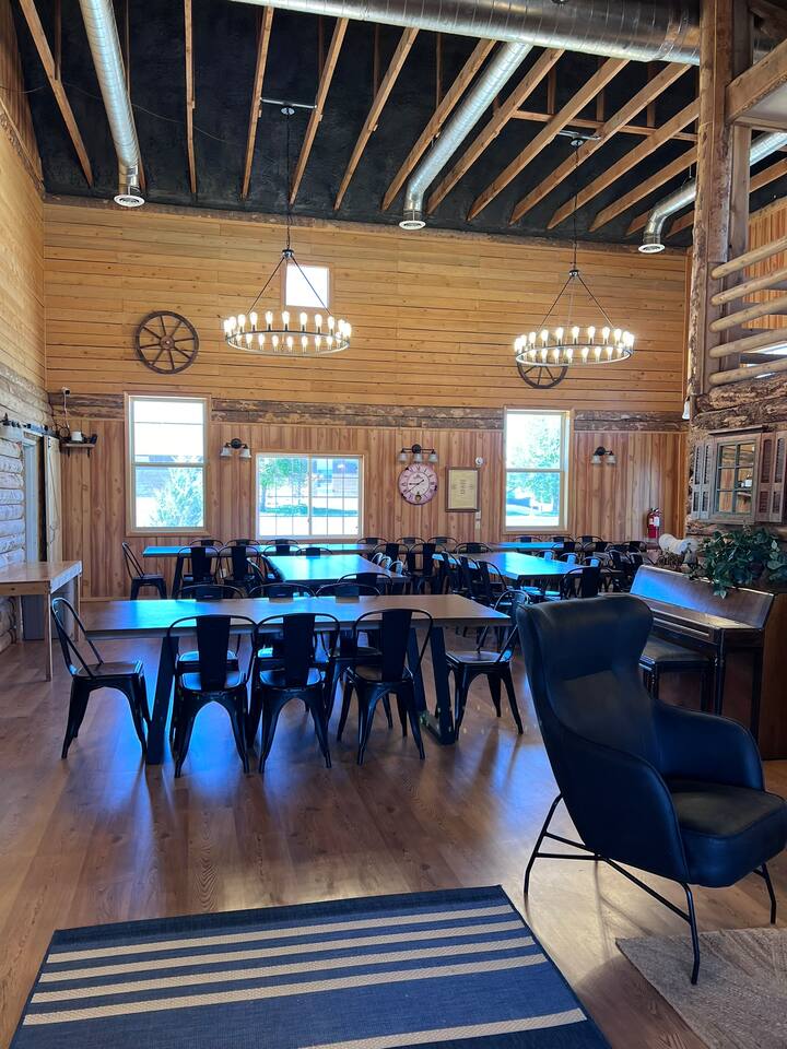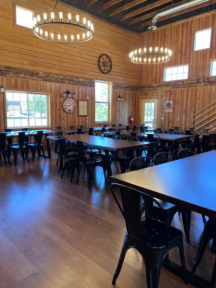The Bear Lake Paris Inn can be rented separately, and includes 43 adult beds plus 4 toddler beds for ages 3-5. Children under 3 are free -- bring your own port-a-crib. There is a fully equipped kitchen, dining room with tables & chairs for games or meals, rest rooms, showers and grounds with picnic pavilion and Fire Pit Area. Homestead guests have access to the Social Hall for an additional $150 per day. This hall is a great setting for movies, devotionals, etc.
